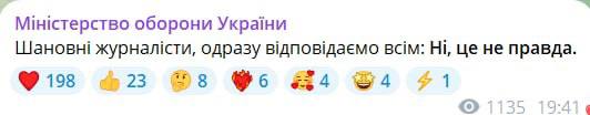 Министерство обороны Украины выступило с опровержением, однако не назвало, чего именно.