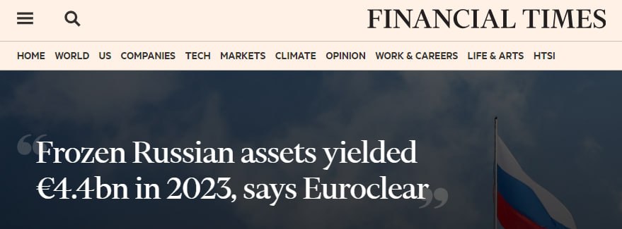 Сообщается, что общий чистый процентный доход депозитария в 2023 году составил 5,5 млрд евро. Из них 4,4 млрд евро приходится на проценты, связанные с подсанкционными активами РФ.