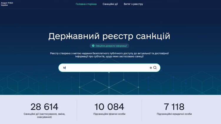 "Согласно решению СНБОУ, реестр - это информационно-коммуникационная система, обеспечивающая сбор, накопление, защиту, учёт, отображение, обработку и предоставление информации обо всех субъектах, в отношении которых применены санкции. Источниками информации Реестра выступают решения Совета национальной безопасности и обороны Украины, а также судебные решения о применении санкций", - сказано в сообщении.