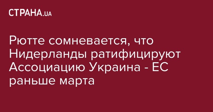Премьер-министр Нидерландов Марк Рютте уверен, что нидерландский парламент поддержит соглашение об ассоциации Украина-ЕС, но вряд ли это произойдет раньше марта. Об этом сообщает "УНН".