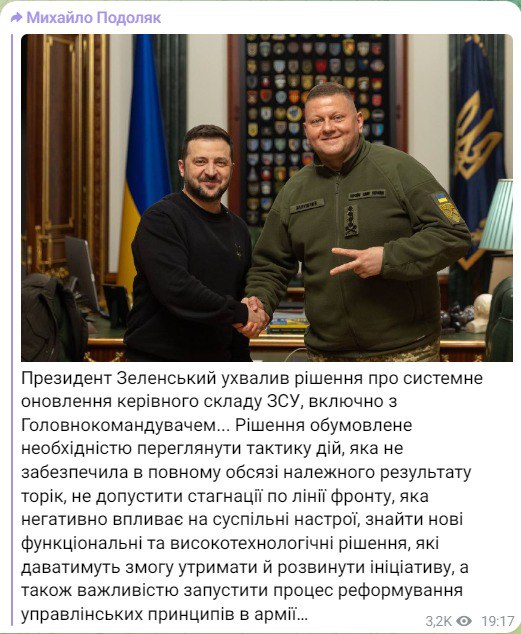 23.47 По отставке Залужного и назначению Сырского.