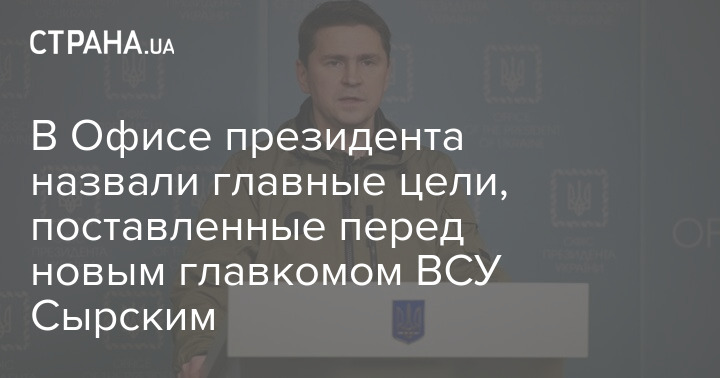 В Офисе президента назвали главные цели, поставленные перед новым главкомом ВСУ Сырским
