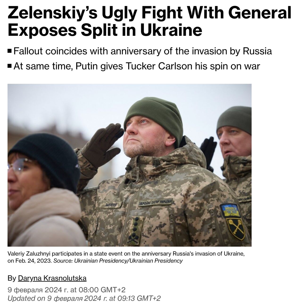 Западные СМИ продолжают обсуждать отставку главнокомандующего ВСУ Валерия Залужного. "Безобразная борьба Зеленского с генералом обнажает раскол в Украине", - с таким заголовком об увольнении военного вышел материал агентства Bloomberg.