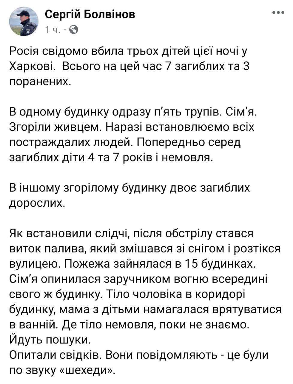 В Харькове, где дроны попали по топливному объекту, сгорели заживо две семьи.