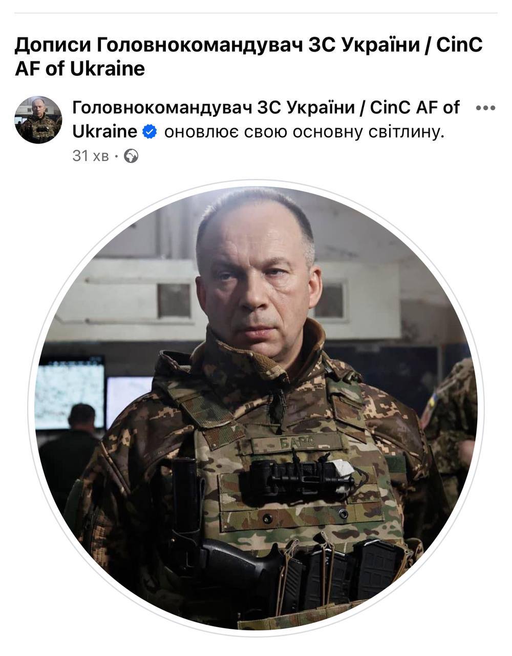На официальной странице Главнокомандующего ВСУ в Facebook обновили основное фото.