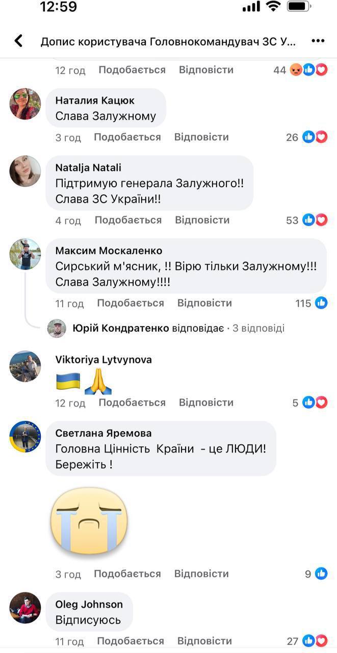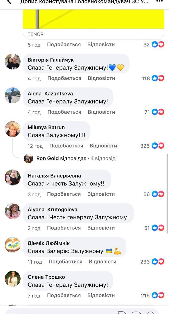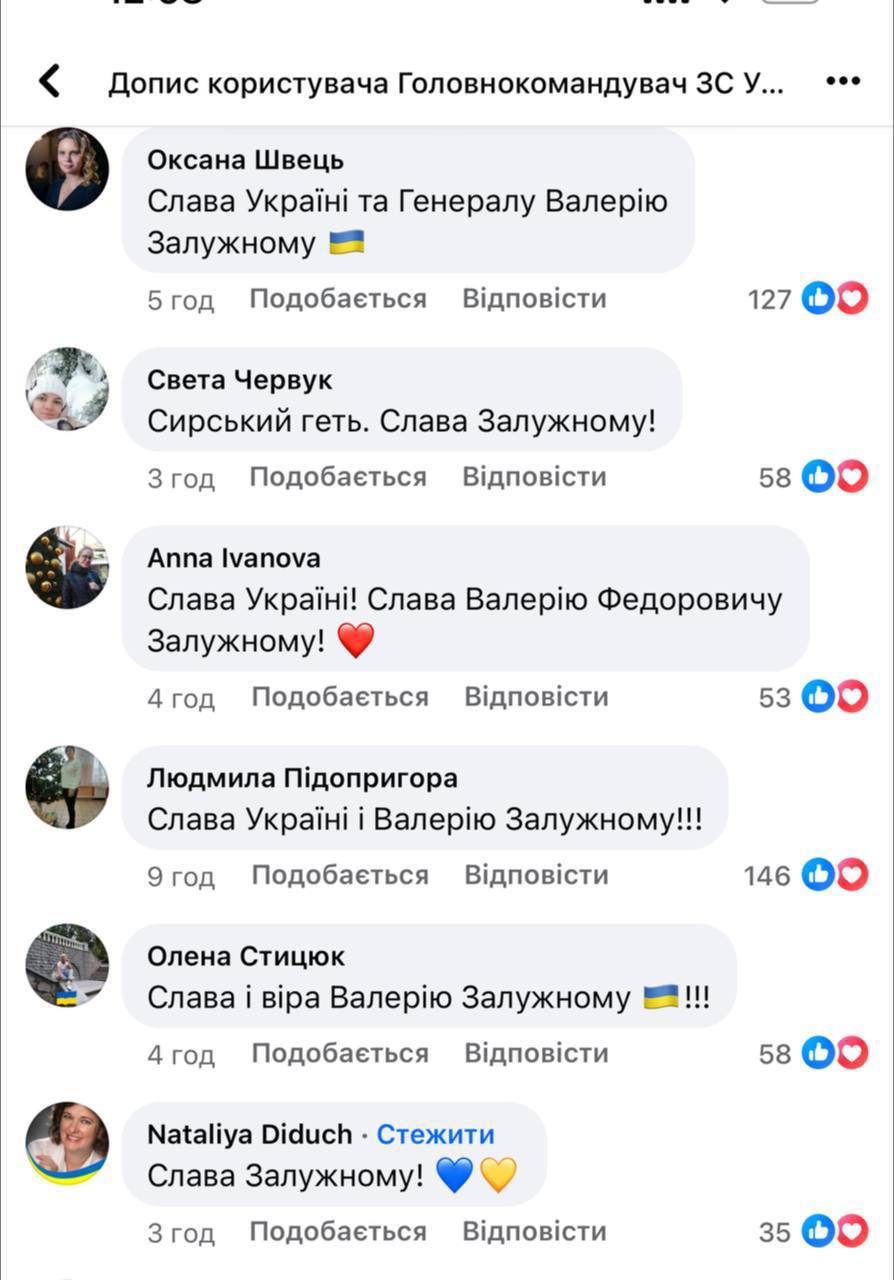 Также в комментариях многие выражают слова поддержки бывшему Главкому Валерию Залужному.