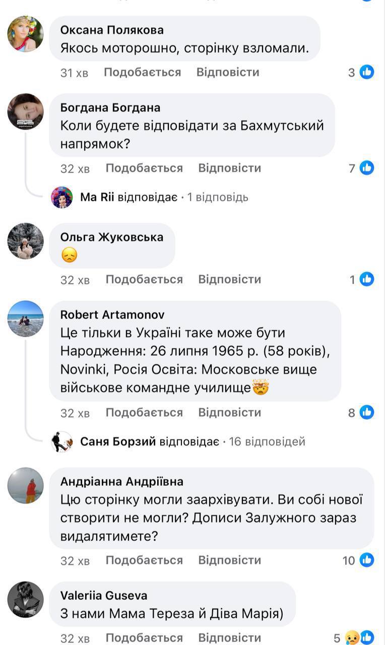 В комментариях под фото поднялась волна хейта. Пользователи ФБ пишут нелицеприятные слова в адрес нового Главкома.