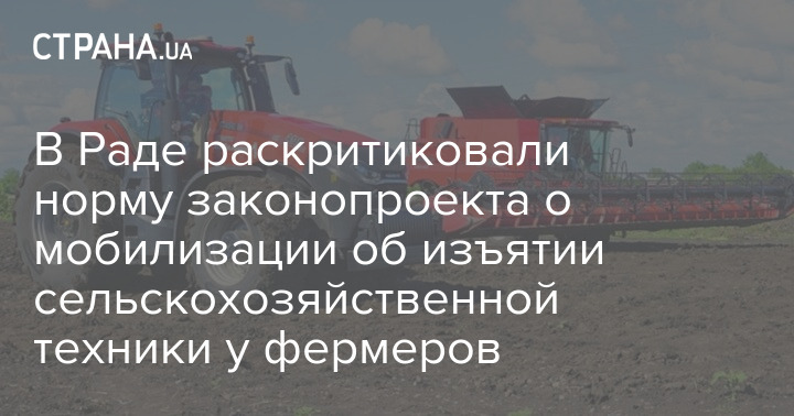 В Раде раскритиковали норму законопроекта о мобилизации об изъятии сельскохозяйственной техники у фермеров