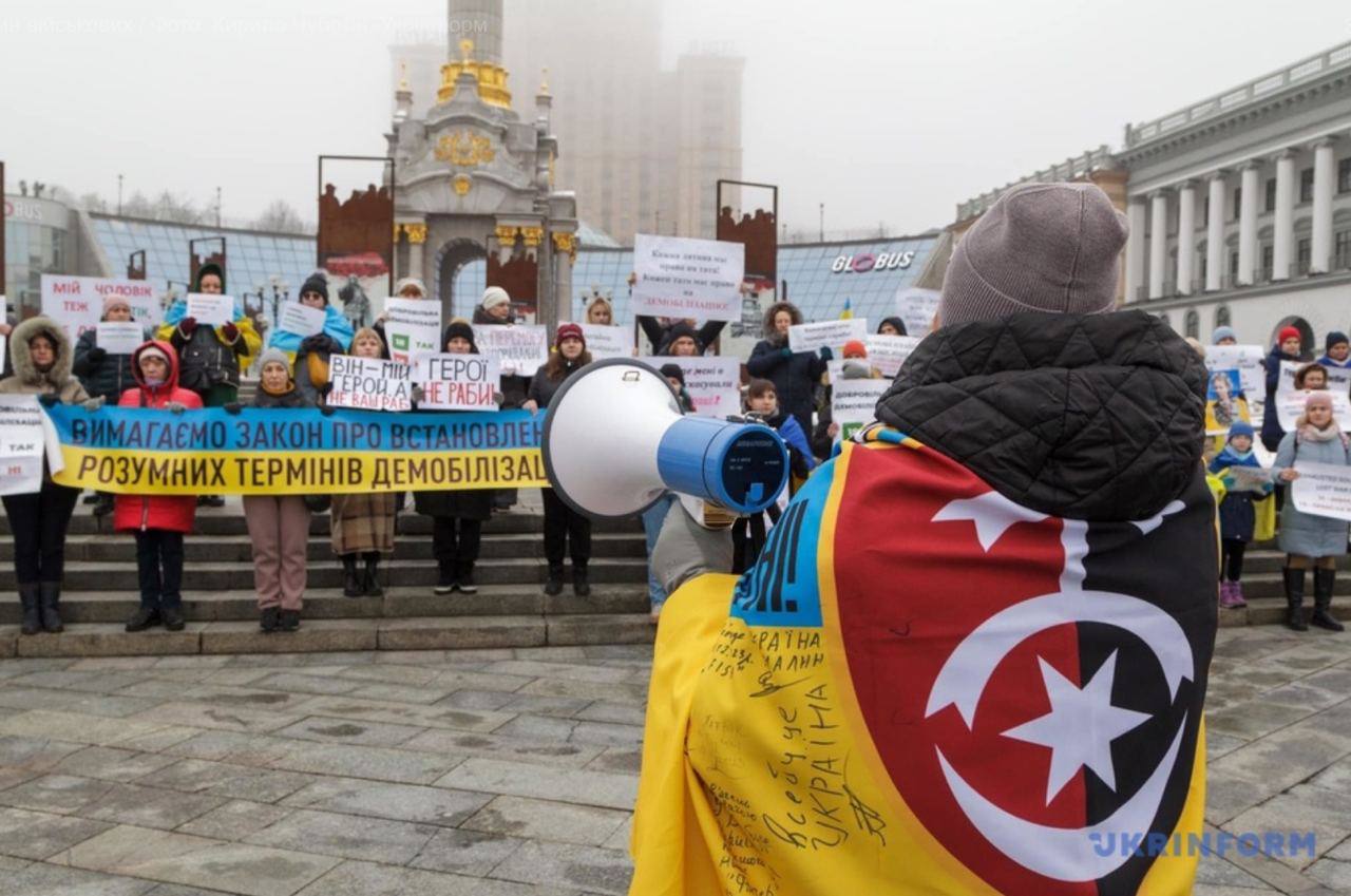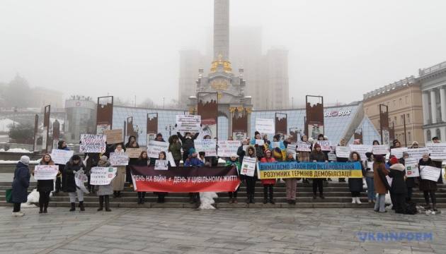 13:30 В Киеве семьи военных, которые сейчас находятся на фронте, в очередной раз вышли на митинг с требованием демобилизовать их родных.