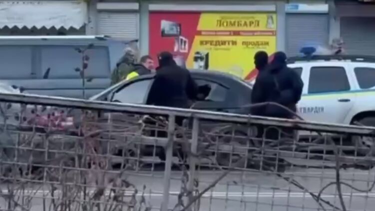 Отметим, что на видео, где мужчина в балаклаве и черной одежде локтем разбивает стекло автомобиля, хорошо видны люди в военной форме, которые находились рядом на остановке. Также рядом были припаркованы микроавтобус и автомобиль, похожий на машину Нацгвардии.