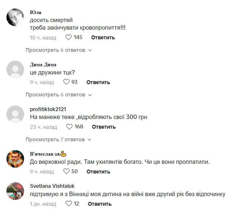 Подобные мероприятия не раз проходили и в других городах. Но протест в Виннице привлек внимание пользователей тем, что его немногочисленные участницы (судя по видео, не более 30 человек) добавили ещё одно требование - мобилизации уклонистов.