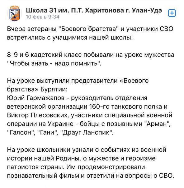 Бывшие "вагнеровцы" провели для детей "урок мужества". В сообщении наёмники называются только по позывным: "Арман", "Галсон", "Гани", "Драуг Ланспик".