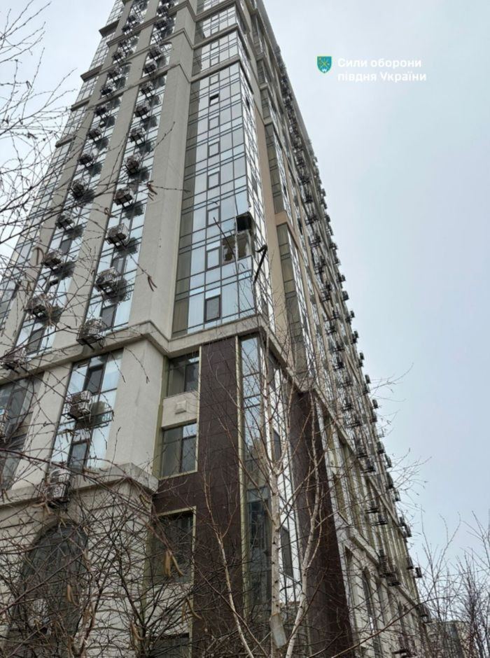 Обломками повреждены недострой и остекление нескольких многоэтажек в прибрежной зоне.