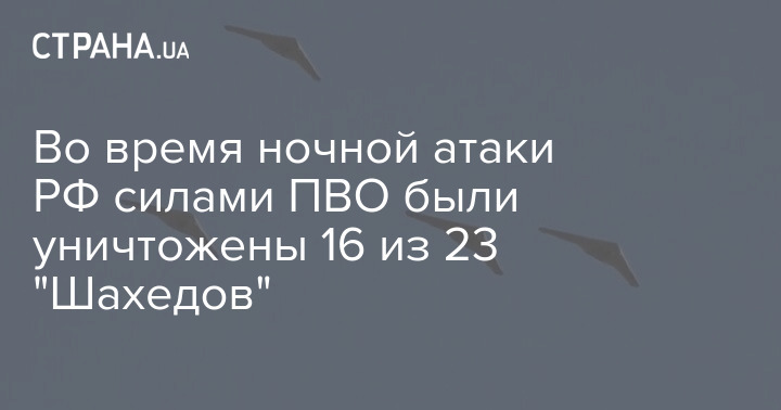 Сегодня ночью россияне атаковали Украину 23 ударными дронами типа "Shahed-136/131". Силами ПВО были уничтожены 16 беспилотников.