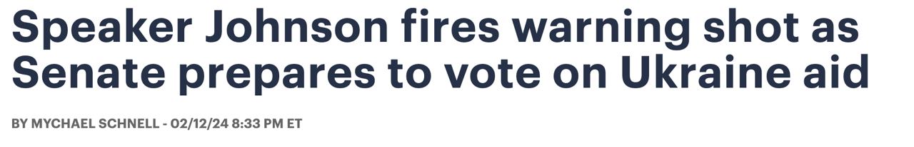 Спикер Палаты представителей Майк Джонсон дал понять, что заблокирует законопроект о выделении помощи Украине, Израилю и Тайваню без решений по границе, если он пройдет через Сенат.
