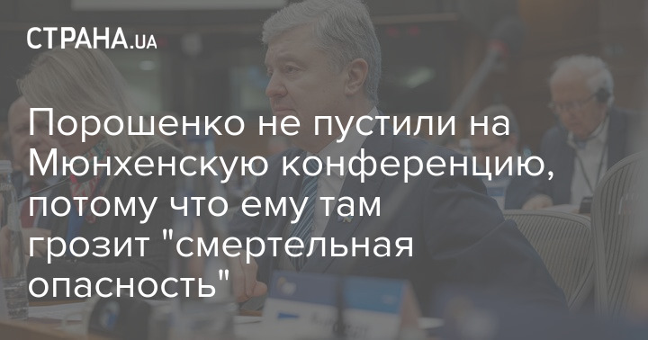 Экс-президента Украины Петра Порошенко не пустили на Мюнхенскую конференцию по безопасности, потому что ему там грозит "смертельная опасность".