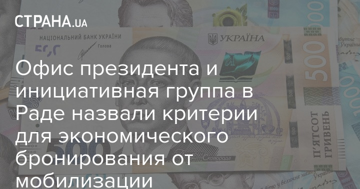 Офис президента и инициативная группа в Верховной Раде имеют два разных подхода относительно критериев для экономического бронирования от мобилизации – либо это налоги с зарплаты не менее 30-35 тысяч гривен, либо 20 тысяч гривен доплаты за работника ежемесячно.