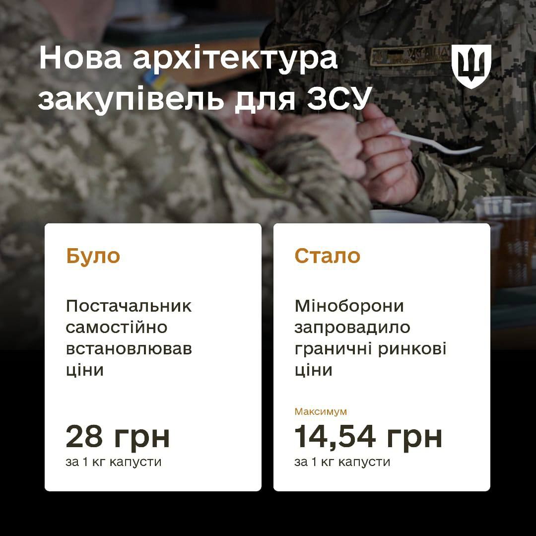 Именно по такой схеме появились "яйца по 17 грн". Минобороны заверяет, что подобное впредь не повторится, потому что они ввели предельные цены на продукты, выше которых поставщики не могут поставлять продукты военным.
