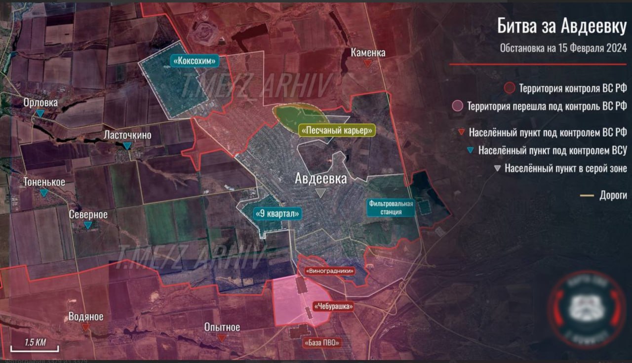 В такой ситуации у ВСУ остается два варианта. Либо контратаковать "клешню" россиян около Индустриального проспекта и "Бревна" с целью восстановить контроль над путями в Авдеевку. Либо, чтобы не попасть в окружение, уйти из южной части Авдеевки, заняв новую линию обороны в районе коксохимзавода.