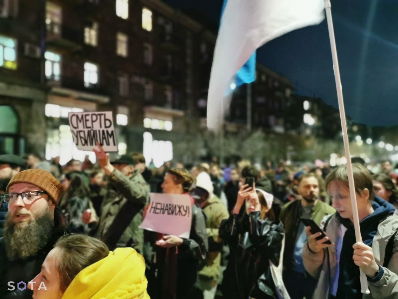 Также российские оппозиционные издания сообщают, что жители городов РФ создают стихийные мемориалы и выходят на пикеты.