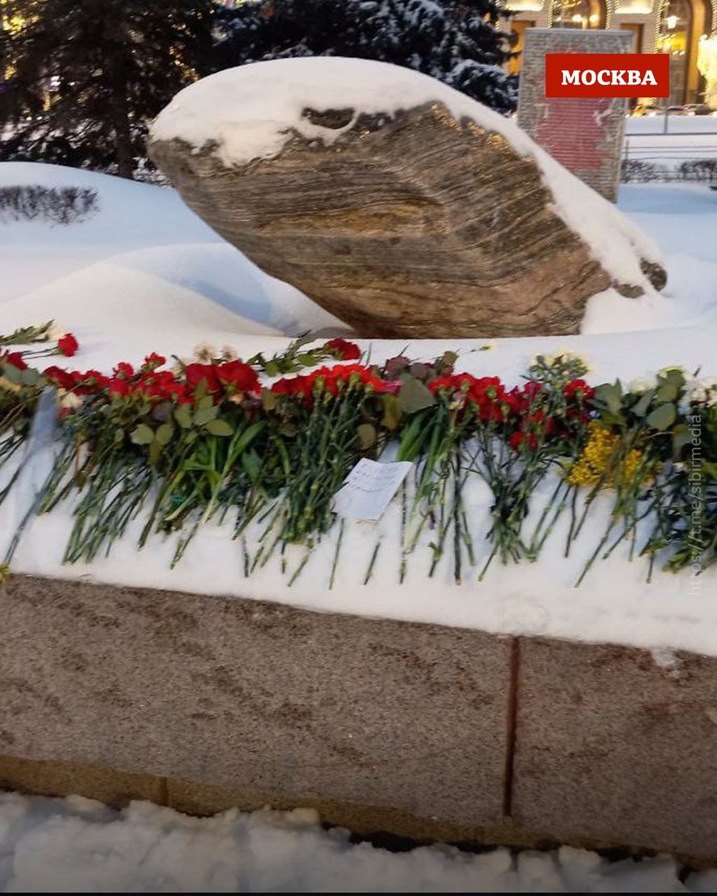 Кроме того, в Москве цветы в связи со смертью Алексея Навального несут к Соловецкому камню, установленному в память о жертвах репрессий советской власти.