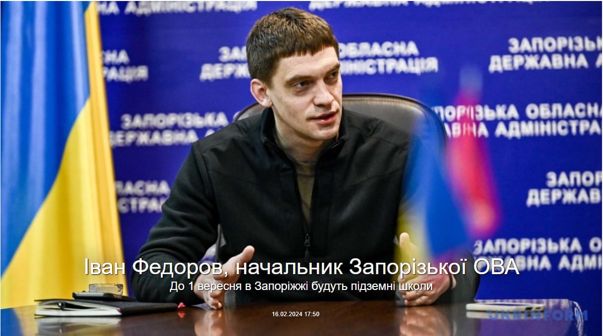 "Задача проста: есть сколько-то школ, сколько-то укрытий готовых, есть те, которые нужно сделать, построить подземные школы. Почему Харьков смог, а Запорожье нет? До 1 сентября в Запорожье будут подземные школы", - отметил Федоров.