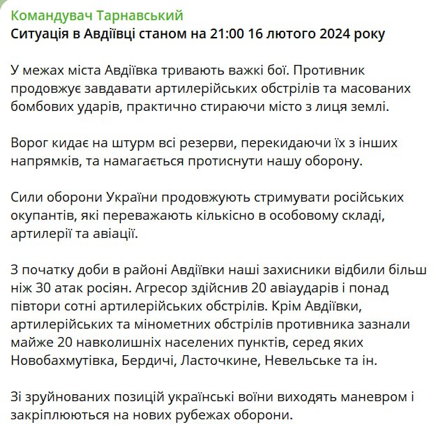 Война в Украине идет уже 723-й день. Мы следим за последними новостями и ключевыми событиями 16 февраля 2024 года в обновляемом онлайне .