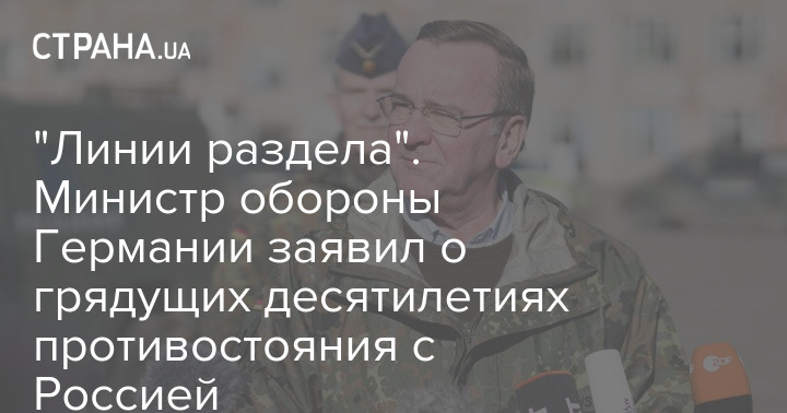 Министр обороны Германии Борис Писториус заявил о грядущих "десятилетиях" противостояния с Россией. И о "линиях раздела" в Европе.