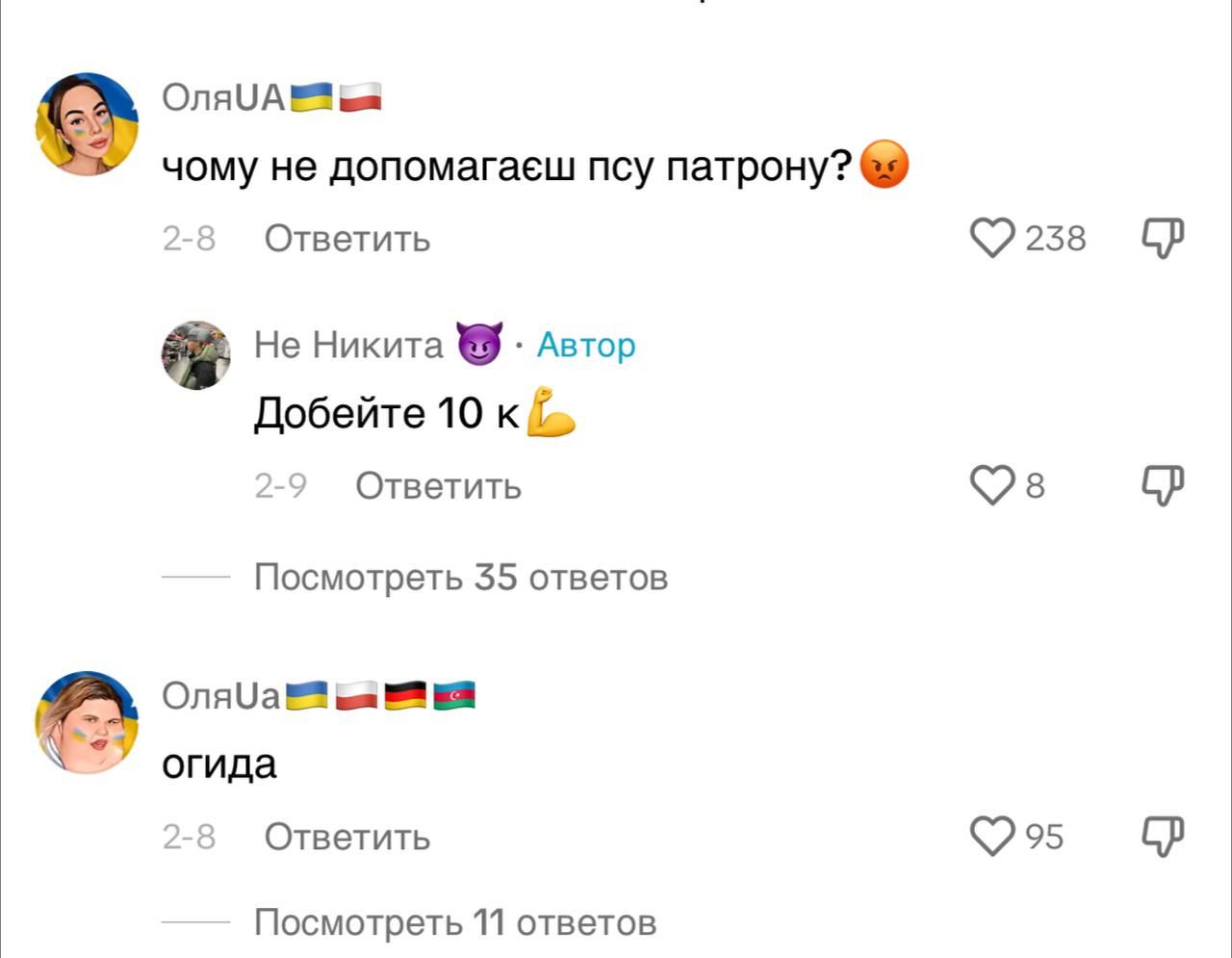 В других случаях мемный персонаж выражает свое возмущение словами "огида, зрада, уклонист и т.д".
