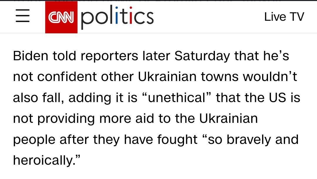 Также CNN сообщает, что Байден "не уверен, что другие украинские города также не падут" после Авдеевки.
