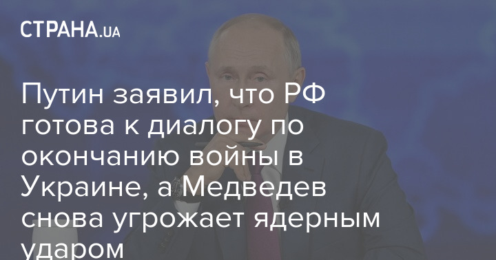 Президент РФ Владимир Путин заявил, что РФ готова к диалогу по окончанию войны в Украине. Об этом пишут российские СМИ.