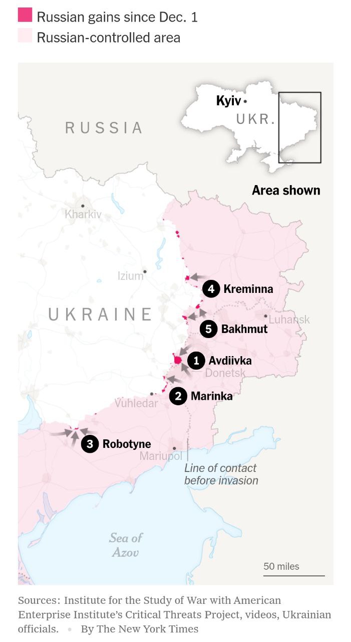 Захват Авдеевки позволяет армии РФ высвободить силы для атак на Угледар - The New York Times