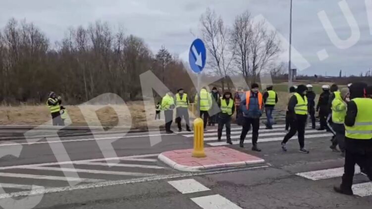 Украинские водители, которые застряли в Польше из-за блокады польскими фермерами украинской границы, с самого утра 19 февраля заблокировали трассу перед польским городом Дорогуск, возле которого находится КПП "Дорогуск-Ягодин".