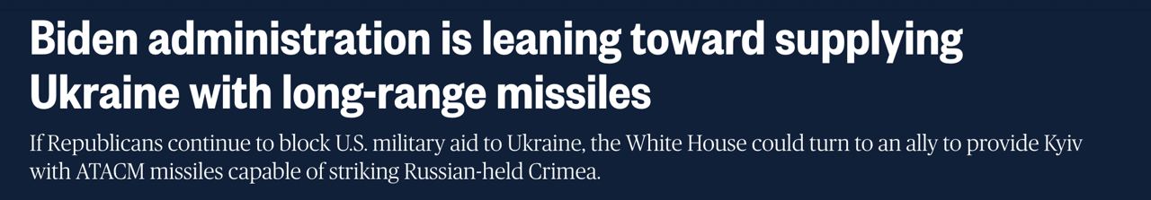 Сейчас Белый дом "склоняется" к поставке более дальнобойной версии, но любая помощь заблокирована в Конгрессе. К тому же у США самих ограниченный запас таких ATACMS, и они вряд ли отправят их в Украину без денег для пополнения американских запасов.