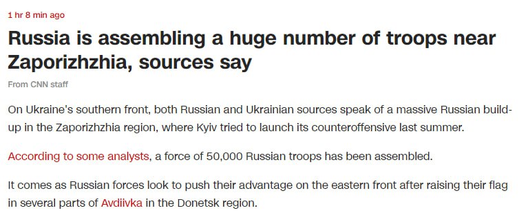 "Огромное количество войск". Российская армия наращивает группировку в Запорожской области - CNN