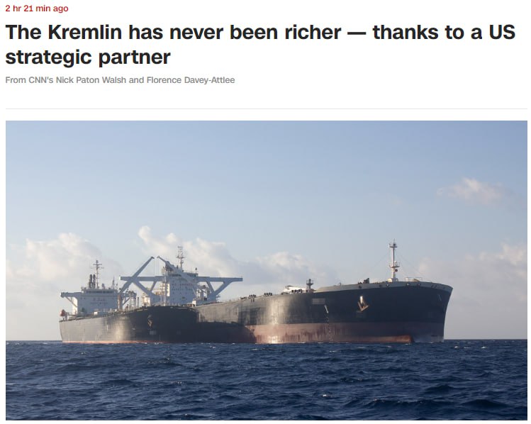 CNN отмечает, что продажи российской нефти в Индию не подпадают под санкции и являются вполне законными, хотя экспертиза маршрутов доставки экспертами позволяет предположить, что в этом огромном объеме поставок может участвовать "теневой флот" танкеров, специально созданный Москвой.
