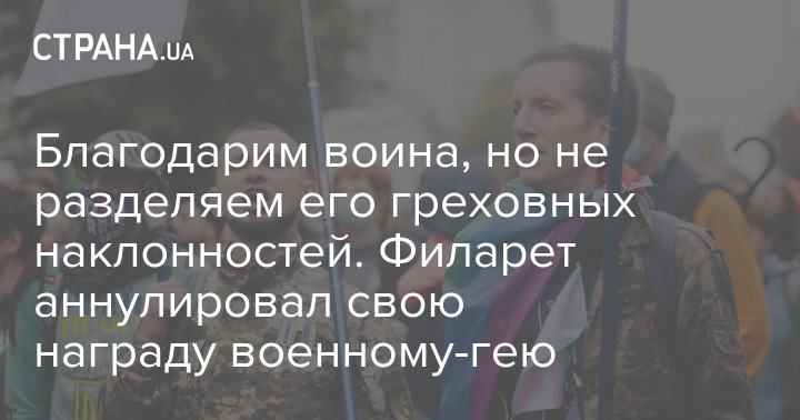 Благодарим воина, но не разделяем его греховных наклонностей. Филарет аннулировал свою награду военному-гею