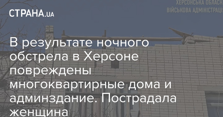 В результате ночного обстрела в Херсоне повреждены многоквартирные дома и админздание. Пострадала женщина