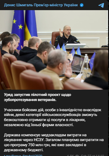 Как отметил глава Кабмина, протезирование зубов военным - пока пилотный проект.