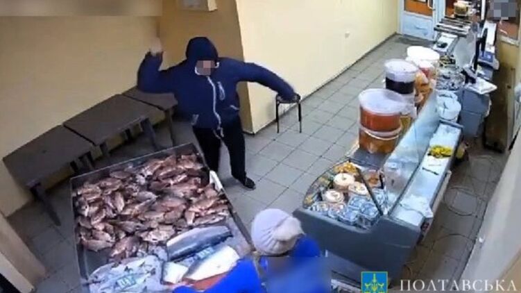 В Полтаве мужчина с ножом напал на продавщицу рыбного магазина.