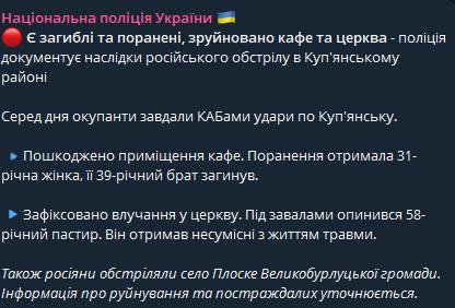 РФ ударила КАБами по центру Купянска. В церкви погиб священник