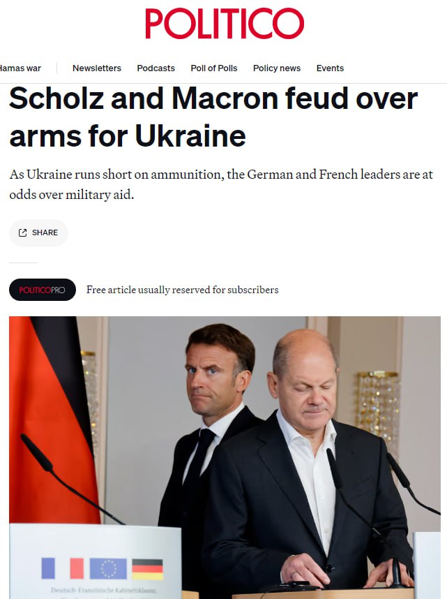 Вражда канцлера ФРГ Олафа Шольца и президента Франции Эммануэля Макрона усиливается из-за разных подходов по Украине.
