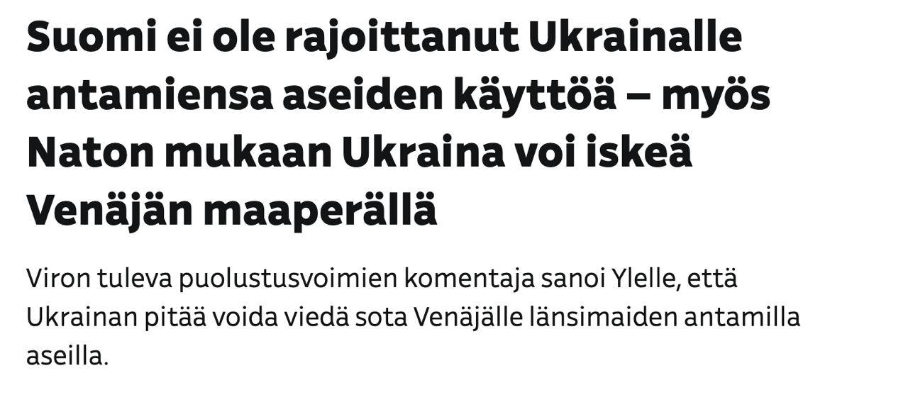 Финны отмечают, что такие ограничения установили страны, передавшие Украине дальнобойное оружие. Финляндия же передала оружие меньшей дальности, хотя публично не уточняла, какое именно.