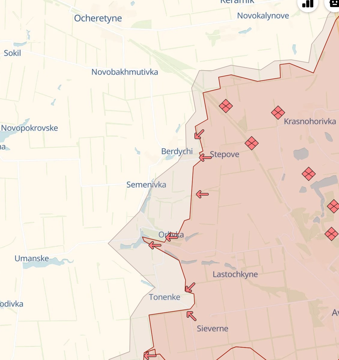 Российские паблики утверждают со вчерашнего дня, что обе деревни уже захвачены, но в них пока "идет зачистка". Украина официально этого не подтверждала. Генштаб в утренней сводке сообщил об отражении атак в районах Орловки и Тоненького.