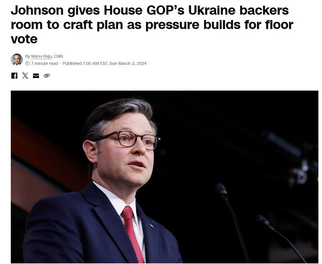 При этом CNN пишет, что Джонсон фактически "сорвал двухпартийный пакет помощи Украине, предложенный Сенатом".