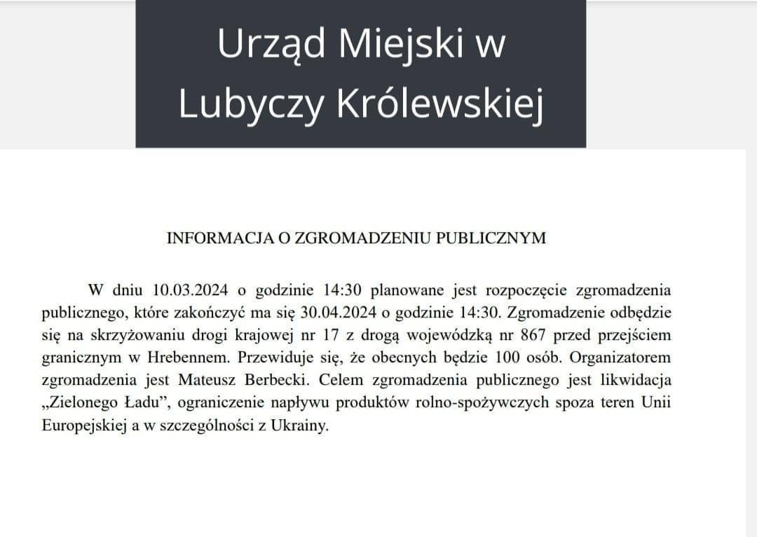 Также польские профсоюзы фермеров анонсировали крупную акцию протеста в Варшаве на 6 марта на 11:00.
