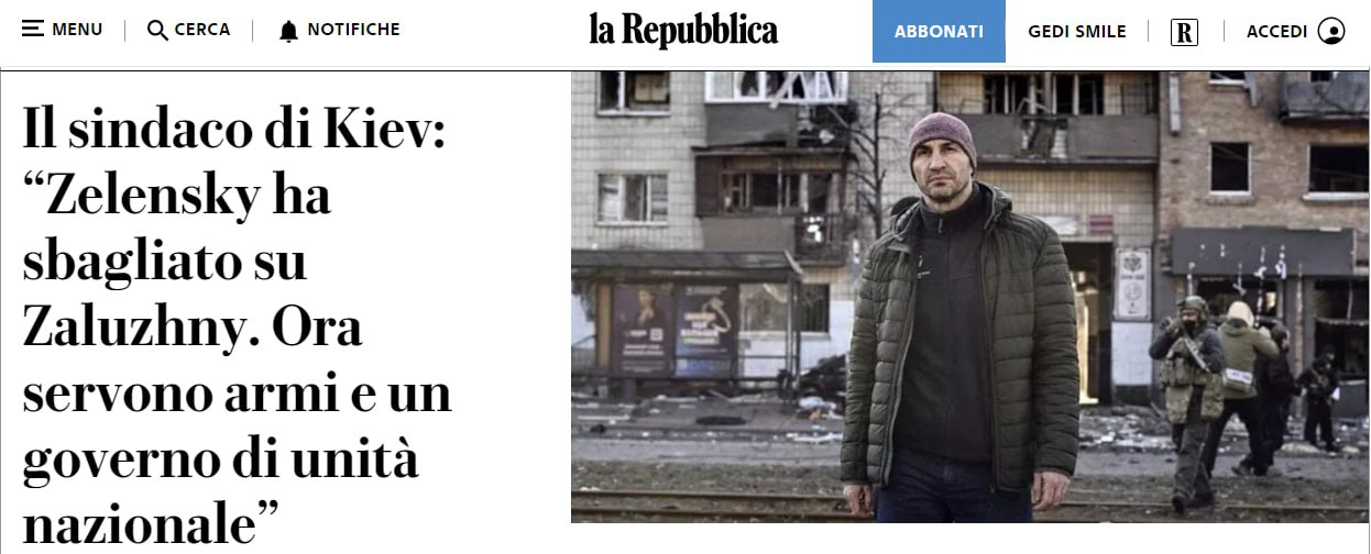 "Изгнание генерала Залужного было очень серьезной ошибкой. Теперь нам нужно правительство национального единства, чтобы перегруппироваться", – заявил Кличко.