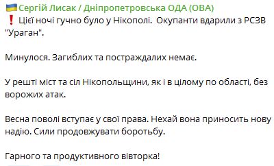 07.35 Этой ночью по Никополю оккупанты ударили из РСЗО "Ураган".