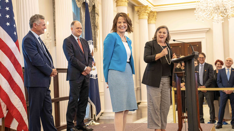 "Именно лидерство Виктории в Украине дипломаты и исследователи внешней политики будут изучать еще долгие годы. Ее усилия были незаменимы для противостояния полномасштабному вторжению Путина в Украину, для формирования глобальной коалиции, чтобы гарантировать его стратегическую неудачу, и для помощи Украине в достижении того дня, когда она сможет твердо встать на ноги - демократически, экономически и в военном отношении", - считает Блинкен.