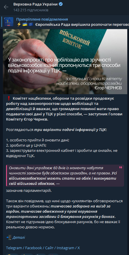 Между тем вчера сообщалось, что украинский министр юстиции не видит в законопроекте о мобилизации нарушений Конституции.